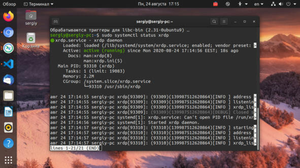 Затем можно подключиться к настроенному серверу из Windows стандартными средствами системы или из Linux с помощью утилиты Reminna, только протокол надо будет выбрать RDP вместо VNC.