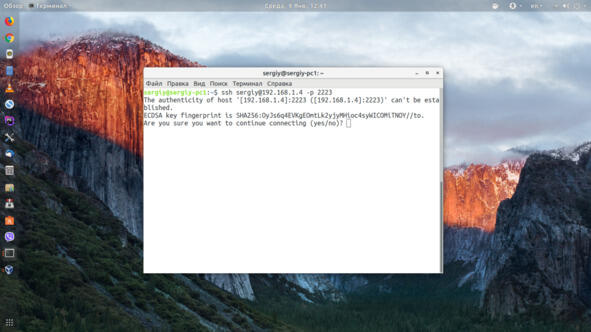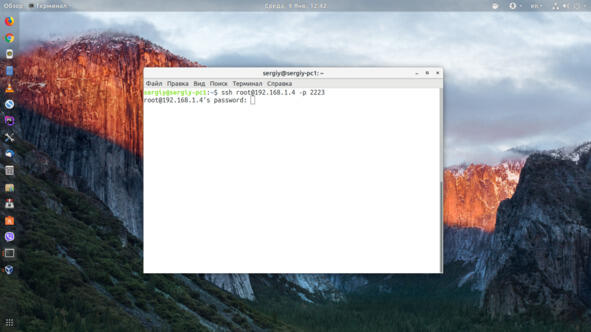 Чтобы выполнить подключение по SSH Linux нажимаем Ctrl+Alt+T для открытия терминала и набераем команду, заменив нужные значения:
