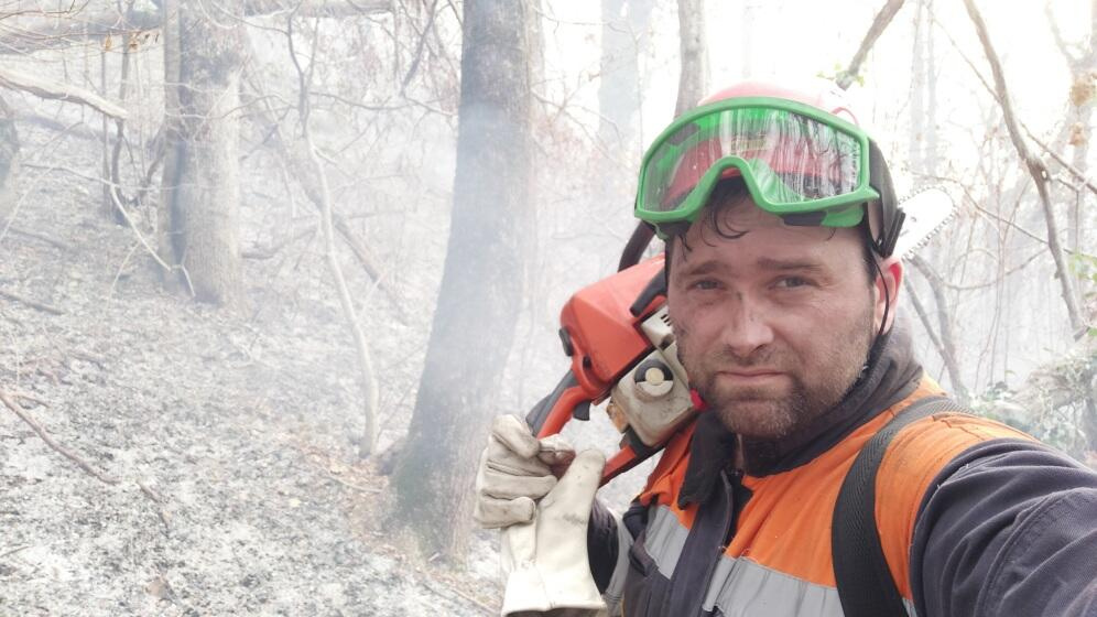 Спасатель на пожаре(фото из архива автора)