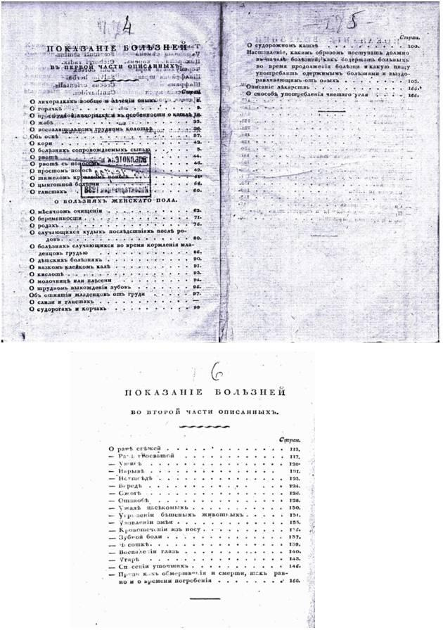 Фото 9. «Показание болезней» из второй части книги И.И. Энегольма «Карманная книга военной гигиены, или замечания о сохранении здоровья русских солдат»