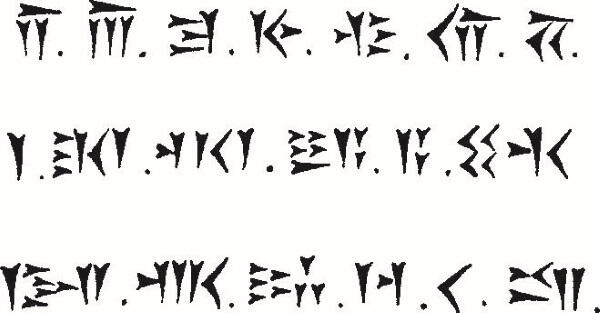 Несколько клинописных надписей были опубликованы задолго до раскопок Ботты и Лэйярда, и работа над ними дала ключ к новому материалу. На развалинах дворцов царей Древней Персии, особенно в Персеполисе, есть много хорошо сохранившихся клинописных надписей на камне. Какие-то их части были скопированы путешественниками как диковинки, но только в конце XVIII в., когда были сделаны более тщательные и полные копии, было замечено, что эти надписи из персидских дворцов содержали три различные системы письма (рис. 3). Одна из них оказалась системой письма, при помощи которой были сделаны надписи, найденные на кирпичах в окрестностях Вавилона.