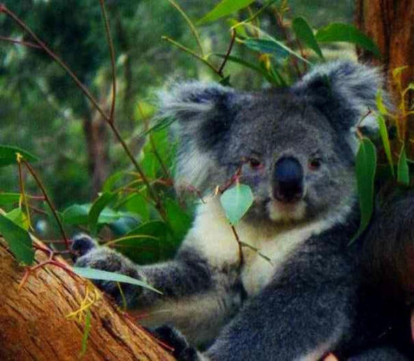 Питаются они исключительно листьями эвкалиптов определённого сорта, в которых содержится какое-то снотворное или даже наркотическое вещество. В результате, развалившись на ветках в самых уморительных позах, на вас из полудрёма лениво погладывают охмелевшие глазки пушистых «наркоманов». Из 24 часов они бодрствуют в среднем только четыре. Кстати, коалы почти не пьют воду. Этот феномен объясняет происхождение слова «коала». На языке австралийских аборигенов оно означает «непьющие».