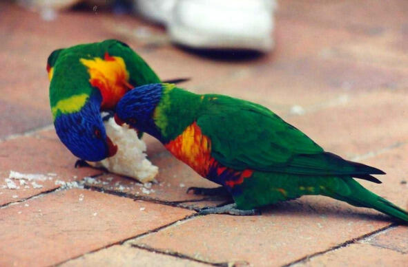 Пернатый мир Австралии, разнообразный и разноцветный, вызывал у нас, пожалуй, самый большой восторг. У каждого водоёма толпятся пеликаны, утки и другие водоплавающие птицы. Если люди усаживаются на траве, то их тут же окружают голуби и чайки в надежде быть накормленными. Стоит подойти к берегу реки, как утки выстраиваются в очередь, питая ту же самую надежду. Деревья и лужайки парков пестрят от попугаев.