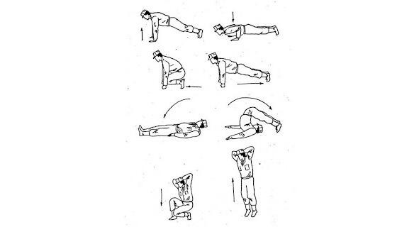 Тест N2. (Рисунок 1), на силовую выносливость. Включает в себя 4 повтора комплекса упражнений: