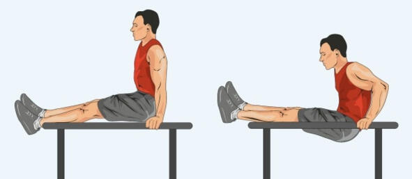 Рисунок 14. Вертикальные отжимания на брусьях с согнутыми ногами.