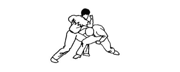 Основной набор ударов, как правило, включает прямые удары кулаком в голову, низ живота (рисунки 17, 18), удары локтем (рисунки 19 и 20), удары ногами в коленный сустав (рисунок 21).