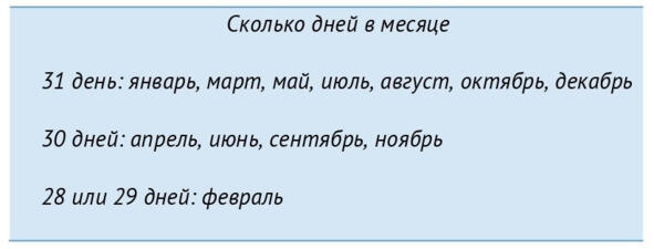 Месяц добавляем столько дней, сколько фактических дней в данном месяце. Т. е. если вы на данном расчете находитесь в декабре, то прибавляем 31 день, если вы находитесь в ноябре, то прибавляем 30 дней и так далее. Чтобы не запутаться, смотрите таблицу ниже.