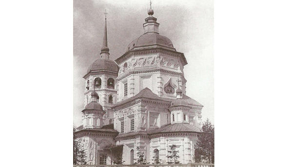 За мощным силуэтом храма можно увидеть единственную в Иркутске церковь-ротонду. Она была освящена во имя Григория Неокесарийского в 1805 г. и возведена по проекту известного архитектора А. И. Лосева.