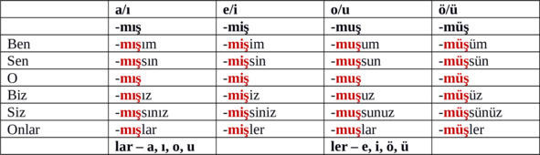 Поставьте глаголы в нужную форму прошедшего субъективного (неочевидного) времени (-mış).