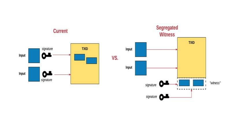 В Segregated Witness транзакции и подписи разделяются для обеспечения большего количества транзакций на блок.