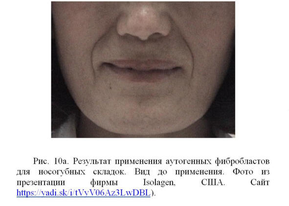 Аутогенные фибробласты применяют для коррекции морщин, атрофических рубцов, атрофических участков кожи, нарушений структуры кожи (Boss et. al., 2000).