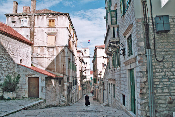 И вновь серая краска дня, морось дождя. Гуляя по улицам города, я даже не надеялся, что смогу сделать хотя бы одну фотографию. Тем не менее с каждым шагом я все больше влюблялся в Шибеник, который по своей красоте не уступал Трогиру. Передать, что я чувствовал в тот момент, очень трудно. Город словно вымер, дождь разогнал всех: и горожан, и приезжих. Однако не было ощущения одиночества.