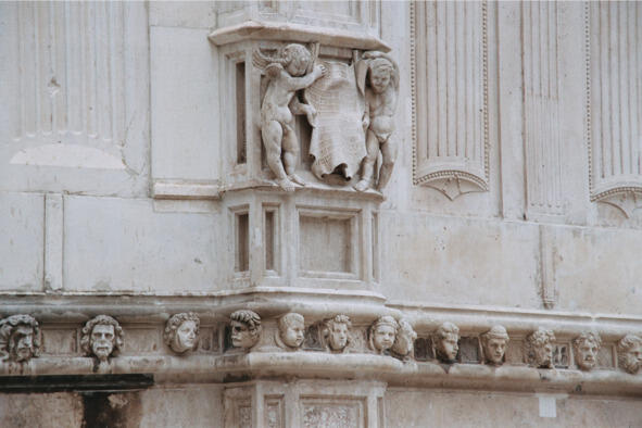 Узнав, что храм открыт, я заглянул внутрь. Да, что ни говори, а красоту словами не передать. Лучше съездить и все самому увидеть. Ведь не зря собор Св. Якова, который возвели архитекторы Юрай Далматинец и Никола Флорентинец, называют «жемчужиной» Шибеника. Это единственный в Европе храм, построенный из цельных каменных плит и опоясанный с внешней стороны ренессансным фризом, украшенным, как утверждают, «головами» горожан-современников Далматинца. К сожалению, внутри собора снимать нельзя, но зато можно приобрести довольно красочные открытки, что я и сделал, но не в тот день, а значительно позже, в один из своих очередных приездов на автовокзал Шибеника.