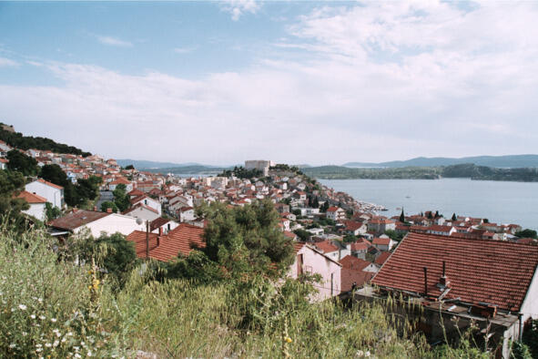 Программа-максимум в этот день была выполнена полностью, но я жаждал еще подвигов, хотя физически уже чувствовал усталость. Однако, приняв решение, я все же отправился на «дальние подступы», а точнее, как раз в то место, которое я приметил, выезжая утром из города по направлению к Задару, в качестве наиболее удачной точки для панорамной съемки. Подъем в гору ускоренным шагом занял минут двадцать, но, дойдя до конца пешеходной зоны, нужного места обнаружить не удалось. Ведь одно дело глазеть на все из окна автобуса сидя на возвышении, а другое делать привязку непосредственно на местности.