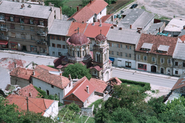 Так вот, когда я увидел величие горы и крепость на ней, а также отметил, что дорога, по которой мы едем, уходит серпантином вверх в сторону крепости, я стал в душе молить водителя, чтобы он как можно дольше ехал не останавливаясь. Быть может, тем самым мой путь туда станет короче. Но автобус, проехав еще немного, свернул в противоположную сторону и выехал к автовокзалу, рядом с которым я заметил сильно разрушенную сербскую церковь.