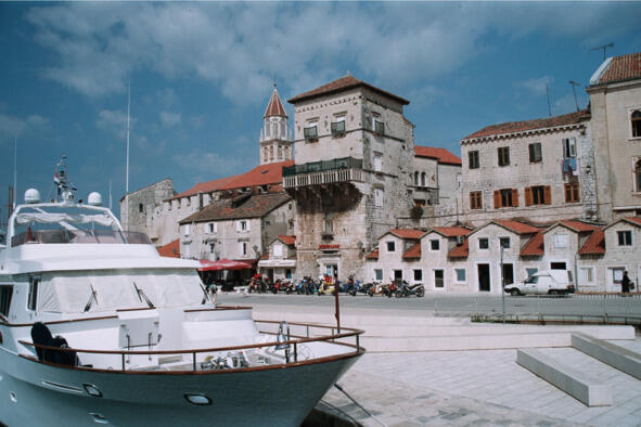 А теперь несколько слов о Трогире. Этот город, несомненно, достоин того, что ЮНЕСКО занесло его в список мировых памятников культуры. Немногие города Хорватии способны потягаться с ним по обилию и красоте каменной резьбы. Говорить только о кафедральном соборе Св. Лавро, внешний вид которого создавался в течение XIII XVI веков, или небольшой, но такой красивой церкви Св. Ионна Крестителя, это не сказать ничего. Одна только извилистость узких улочек в сочетании с простотой и незатейливостью каменных узоров, встречающихся, казалось бы, в самых неподходящих для этого местах, придает особое очарование городу, погружая тебя в атмосферу средневековья. Поэтому группы туристов, на которые ты натыкаешься, гуляя по городу, в отличие от других ситуаций тебе не мешают, поскольку они также погружены в пленительную ауру города.