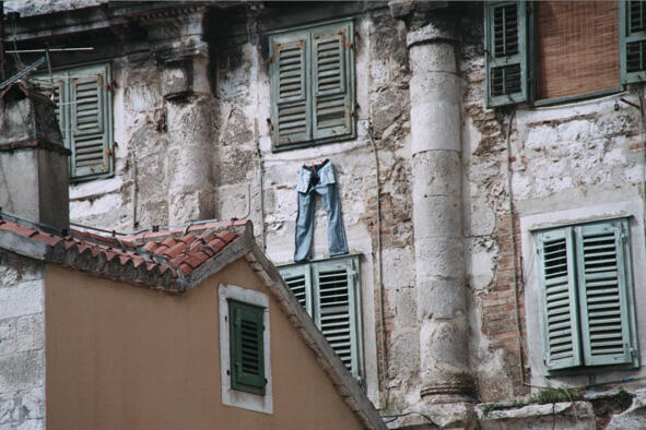 Вернувшись обратно к стенам «стари града» (или дворца Диоклетиана, как кому больше нравится), я оказался возле южного фасада (со стороны набережной) и был приятно удивлен. Это ощущение пришло не сразу, просто я искал ракурс для съемки и как-то (на уровне подсознания) отметил необычность увиденного. Сделав несколько шагов и осознав, что упустил эту нить, я вернулся назад и вновь стал оглядываться по сторонам, постепенно понимая, что это ощущение создает именно фасад стен, глядя на который теряешь чувство времени, словно погружаешься в историю.