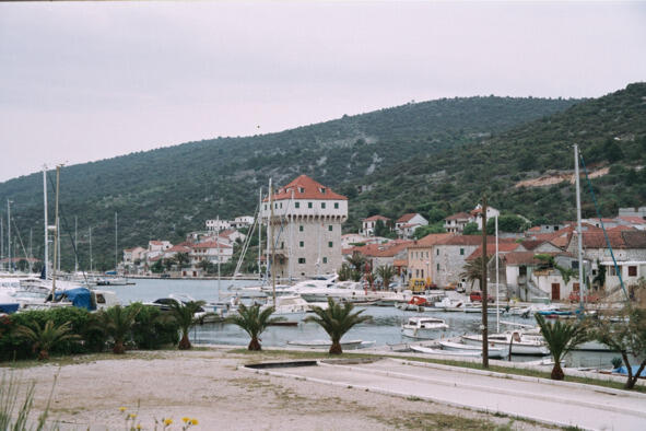 Удивительно, но в эти минуты меня не волновало, успею ли я на автобус, пойдет ли дождь и тому подобное. Я просто наслаждался увиденным. Слева у причала возвышалась прямоугольная в плане башня с верхней оборонительной площадкой под шатровой крышей, крытой рыжей черепицей. Вместе с тем, на мой взгляд, это была современная постройка либо хорошо отреставрированная. Мы-то привыкли, что у нас, если старое, выглядит так, как будто завтра рухнет. Справа, метрах в двухстах, расположилась небольшая часовенка. Вот ей-то, без сомнения, было лет двести и по внешнему виду, и по архитектурному исполнению. Таких крох можно встретить практически в любом уголке Хорватии. И хотя меня подмывало желание подойти ближе, я все же сложил свои причиндалы в рюкзак и вернулся на остановку.