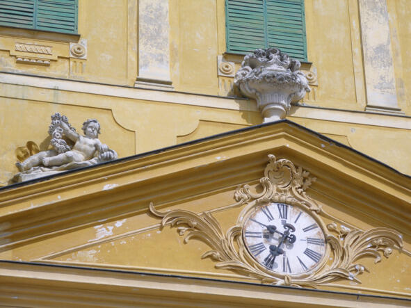 Право, тут есть на что посмотреть! Богатейшая коллекция мебели, посуды, гобеленов. Мне показывают набор маленьких статуэток и говорят, что они сделаны из мейсенского фарфора. Переспрашиваю: «Meißen?» Девушка утвердительно кивает головой. Говорю, что был там, подразумевая, что, будучи в Германии, видел коллекцию мейсенского фарфора. Она же воспринимает это в прямом смысле, что я был в Мейсене. Впрочем, неважно. Рассказ ее интересный, насыщенный. Английский простой и понятный. Это опочивальня королевы, это гостиная. Тут находятся старинные зеркала, там идет реставрация. Все предельно понятно. По пути делаю фотографии, местами задерживаюсь и прошу ее дать некоторые пояснения. Молодец, показала мне все закоулки второго этажа дворца, даже подвела к маленькому балкончику, с которого открывался вид на потайную молельню-будуар с подушечками на полу, высоким подсвечником и иконой в полумраке, задрапированную, как мне показалось, тканями темно красных тонов. В отведенное время мы вложились. Поблагодарив очаровательную спутницу, мы разбежались. Она поспешила к заждавшимся ее китайцам, а я осматривать скульптуры ангелочков на фасаде здания и пройтись по парку.