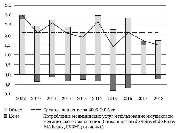 С 2010 г. наблюдается замедление роста показателя потребления медицинских услуг и пользования имуществом медицинского назначения (Consommation de Soins et de Biens Médicaux, CSBM), сначала за счет ценового регулирования, а после 2016 г. за счет резкого сокращения объемов потребления.