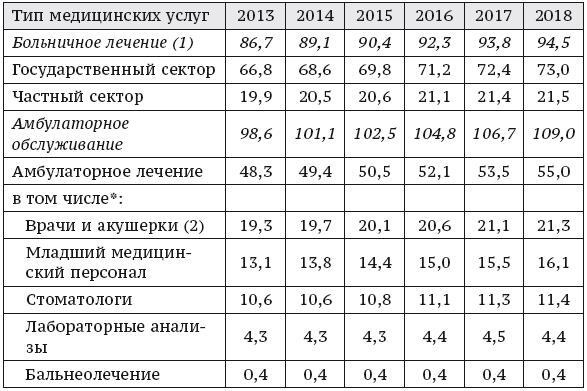 Таблица 5. Стоимость потребления медицинских услуг и пользования имуществом медицинского назначения, в млрд евро