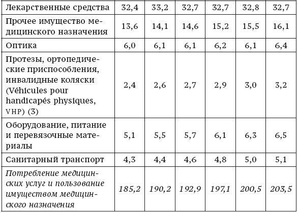 стоимость потребления лекарственных средств в амбулаторных медицинских учреждениях, которое соответствует 16,1 % потребления медицинских услуг и пользования имуществом медицинского назначения (Consommation de Soins et de Biens Médicaux, CSBM);