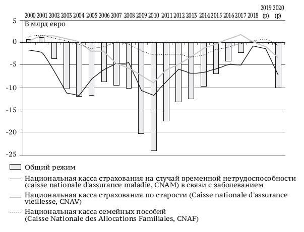 Рис. 4. Баланс общего режима системы социальной защиты Источник: Счетная комиссия системы социальной защиты (Commission des comptes de la sécurité sociale, CCSS), 2019 г.