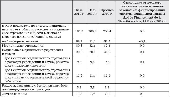 Таблица 4. Ожидаемые показатели в рамках системы национальных задач в области расходов на медицинское страхование (Objectif National de Dépenses dAssurance Maladie, ONDAM)