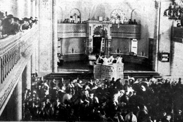 На фото: внутренний вид хоральной синагоги Минска до 1917 года. Источник: http://whereminsk.by/minsk/magazine/one/401