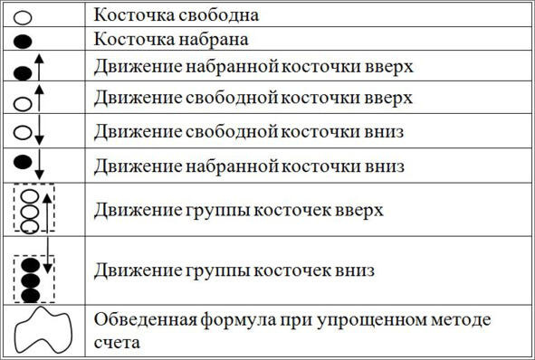 Косточки разделены перекладиной, которая делит их на верхние и нижние: небесные и земные.