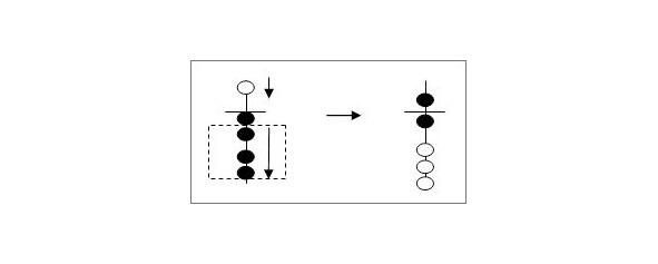 Это операции в пределах одной спицы и правило работает в любом разряде абакуса.