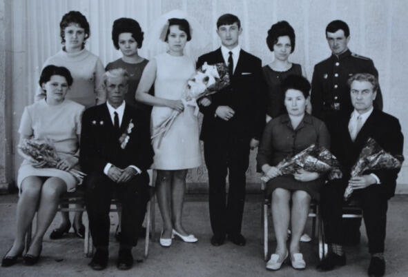 Все хлопоты по подготовке к свадьбе выпали на долю Светы и её родителей. Я выделил лишь часть денег на стол, полностью организовать свадьбу за свой счёт я не мог. Откуда у меня курсанта могли взяться 500 рублей? Именно столько стоила наша свадьба. Написал родителям, они выслали 200 рублей, а в то время это были большие деньги. На регистрацию я пошёл в цивильном костюме, его дал Валентин, белую рубашку и чёрный галстук привезли мои родители, а туфли мы купили. Света была во всём белом, красивое короткое платье (сшила сама), фата, белые туфельки. Света была ослепительно прекрасна, а я беспредельно счастлив!