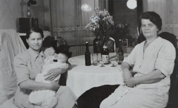 1947. Полина с дочерью Светой. Справа Мута няня.