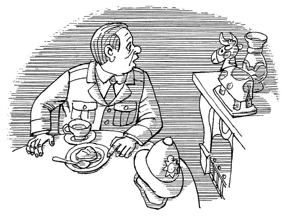 «Му-у, му-у, му-у», раздалось со стороны камина, где корова покачивала головой, и у констебля отвисла челюсть.