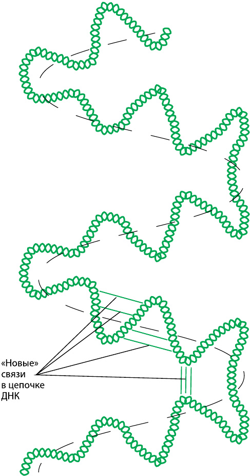 Рис. 4. Появление «новых» связей в цепочке ДНК после многократного складывания