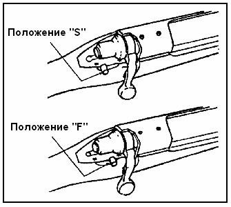 (3) Для снятия с предохранителя, переместите рычаг в положение «F» (рис.2-3).