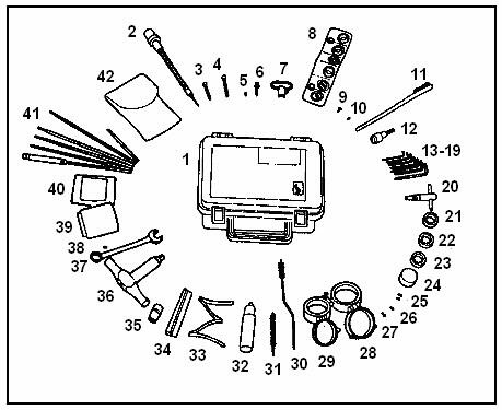 Рис. 2-2. Запасные части, инструмент и принадлежности.