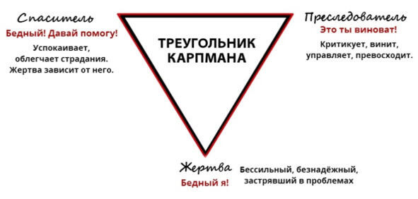 в этих отношениях разыгрывается треугольник Карпмана и каждый из участников попадает постоянно в одну из трех ролей Жертва Преследователь Спасатель. Как правило этот треугольник запускает роль Жертвы.