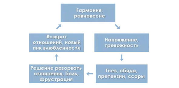 Цикличность страданий партнеров любовного треугольника