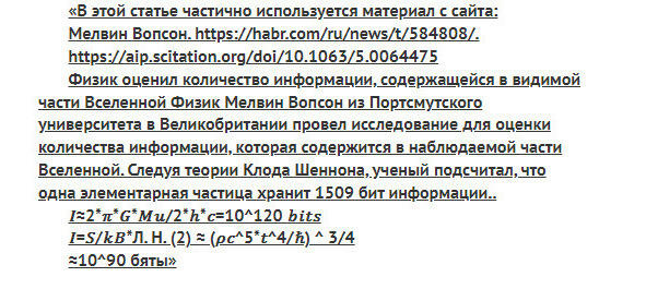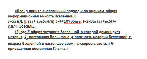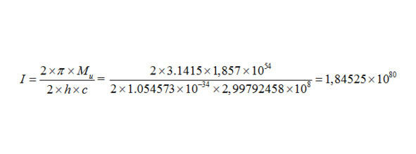 Рис.11. Расчет по этой формуле (это второй способ вычисления информационной емкости Вселенной) этой формулы, по данным динамической временной физики: