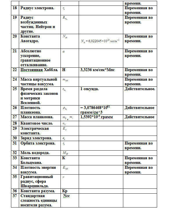 6.27.5. В пятых, в Таблице 16. приведены все постоянные и константы, которые на самом деле постоянные. И которые, нам кажутся постоянными на данный момент времени, но на самом деле, являются переменными константами (постоянными) во времени
