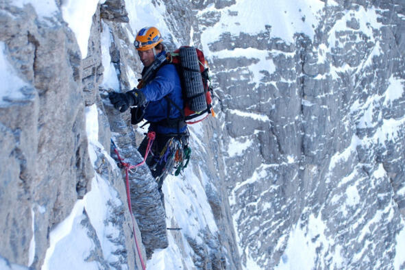 Ahead was a steep rock bastion about 35 meters high. I tried to climb further, but after about 15 meters I finally froze and could no longer move up. It was about 20 meters to the roof. Covered with snow from head to toe, I went down to the shelf to Nicodemus, who had already begun to prepare it for the night.