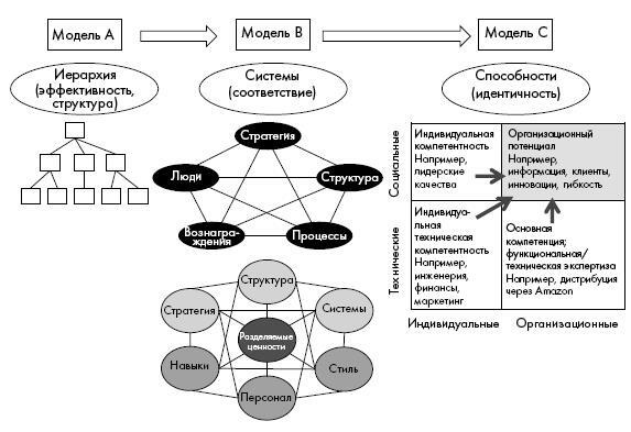 Если вы хотите переосмыслить свою организацию, вам следует для начала принять некие предположения о том, как работает ваша компания. Для этого вы можете рассмотреть, какая из организационных моделей лучше всего описывает ее работу (рисунок 1.2). Существуют три традиционные модели: иерархии, системы и способности.