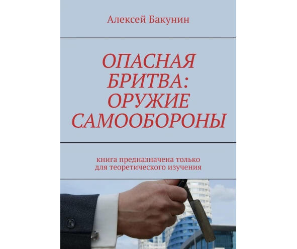 Первая в России и вторая в мире книга, посвященная боевому применению опасной (клинковой) бритвы. Издана в 2019 году в виде электронной книги в издательском сервисе Ridero. Самое демонизированное подручное оружие и орудие парикмахерского труда, рассмотрено в качестве оригинального средства самообороны не смертельного действия. Поскольку с модой на бороды наступил бритвенный Ренессанс, то забытая тема опасной бритвы как оружия самообороны снова становится актуальной. Книга начинается с образного экскурса к появлению оружия в истории человечества и как в результате запретов на боевое оружие в отдельных регионах развивались умения по боевому применению орудий труда и быта. Описаны пять этнокультурных феноменов так или иначе связанных с боевым применением парикмахерской бритвы (португальские фадисты, афроамериканские парикмахеры, афробразильские капоэйристы, итальянские мафиози и даже советские гопники). Подробно разбираются достоинства и недостатки опасной бритвы как оружия (плюсов больше). Показаны приемы нападения и защиты с бритвой от типичных видов агрессии (захватов и ударов руками). Представлена «концепция карманного меча» (иайдзюцу с бритвой) оригинальная техника боевого применения в стиле японского меча. Приводятся примеры использования предметов одежды и обманных движений, самооборона нераскрытой бритвой. Даны практические рекомендации по самообороне от нападающего, вооруженного ножом и бритвой. Особого внимания заслуживает авторский комплекс боевой гимнастики с бритвой для самостоятельного освоения. Все описанные в книге приемы подробно иллюстрированы цветными фотографиями.