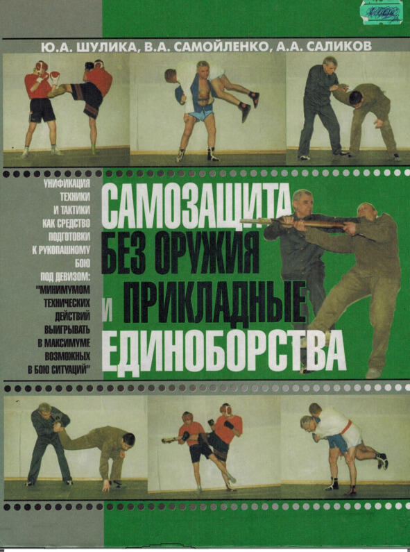 Одно из немногих книг по интегральной самообороне, составленное по типу серьезной монографии известным ученым, доктором педагогических наук, профессором кафедры бокса и борьбы КГАФК, мастером спорта СССР по самбо Ю. А. Шулика (возможно с соавторами). Издано в 2002 году малым (1000 экз.) тиражом, издательством «Краснодарские известия» и сразу вызвло уважение качеством оформления представленного материала (ведь не зря вторым соавтором указан тогдашний мэр Краснодара). Впечатляюще солидное издание, напечатано интересным шрифтом на великолепной глянцевой бумаге приятного фисташкового цвета. Читаешь и как будто доллары перелистываешь. Не подкачало и содержание. Предлагается унификация оптимальной техники и тактики спортивных единоборств (самбо, дзюдо, каратэ, кикбоксинг, тэквондо) в целях подготовки для рукопашного боя. Хорошо представлены проверенные временем боевые приемы борьбы из специального раздела самбо (самооборона от ударов невооруженного и вооруженного ножом, палкой противника). Теоретический раздел представлен авторскими, сложными для неспециалиста классификациями технических действий: стоя, полустоя, полулежа, в партере, лежа в борьбе, и ударов, защит, контратак в ударных единоборствах. Для любителей, есть даже раздел фехтования (фланкирования) длинноствольным оружием со штыком. Отдельно разбираются матрицы и модели тактико-технически действий бойца в соревновательной деятельности и в бою. Информативные качественные фотографии понятно иллюстрируют многочисленные приемы руконожного боя и самообороны без оружия. Книга умная (местами даже слишком). Рекомендуется к приобретению и чтению инструкторам и людям, интересующимся единоборствами и самообороной без оружия. Несмотря на крохотный тираж, ее популистскую версию можно легко найти, так как под новым названием «Боевое самбо и прикладные единоборства» с указанием уже единственного автора Ю. А. Шулика, книга была размножена ростовским издательством «Феникс» в 2004 году.