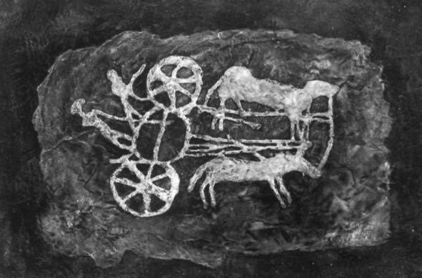 Комментарий. «Современные археологические исследования доказывают, что родиной индоевропейцев является район Южного Урала, где они сформировались в качестве единой языковой группы. Постепенное потепление вызывало таяние ледников, которые отступали к северу, и земля начинала пробуждаться к жизни, появлялись молодая поросль растения, их с удовольствие поедали животные, которые мигрировали вместе с таянием ледников. Следом за животными передвигались и первобытные охотники, которые охотились за мигрирующими животными. Для защиты металлургов создаются общности, сначала на основе общего происхождения роды, а по мере увеличения товарной продукции формируется уже большая семейная община, состоящая уже из фратрии, т.е. нескольких родов. Затем и соседская община в виде племени, дальнейший шаг союз племён, ведущий, в свою очередь, к формированию народа, а затем и государства. Но для любой общности необходима и общность интересов, в данном случае защита металлургов и продукции из них. Так возникали поселки древних металлургов, и в частности, аркаимская культура Южного Урала. Схожие поселения найдены и в Европе, в Германии близ Дрездена и Лейпцига, а также в Австрии и Словакии, возрастом до 7 тысяч лет. После окончания природных ресурсов поселения закрывались, рвы засыпались, остатки жилищ сжигались»2. Индоевропейцы жили в степях на юге России. Они кочевали со своими семьями и пожитками в повозках, крытых войлоком, служивших им и жилищами. Колеса были сделаны из массивных дубовых досок, скрепленных скобами. Позднее им на смену пришли колеса со спицами. В повозку впрягали пару волов. Такие повозки послужили прообразом боевых колесниц с лошадьми.