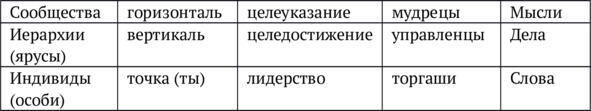 Лидер (подвижник) переключает работу группы с сообщества в иерархию и наоборот, чередуя режим её работы: авторы-акторы.
