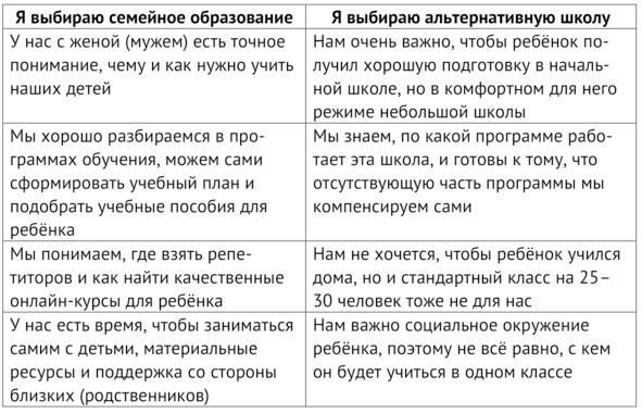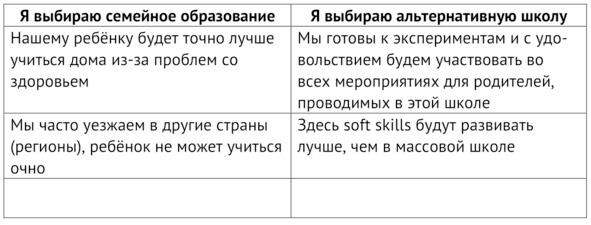На каком этапе школьной жизни семейные и альтернативные школы хороши для детей? Ответ прост: на этапе подготовки к школе, а также начальной школы. Большинство альтернативных школ это именно про начальную школу, в отдельных случаях это школы до 67-го класса. Почему? Если за период обучения в этих школах ребёнок достаточно повзрослеет, сформируется как личность, разовьёт свои таланты и способности, разберётся, что ему интересно изучать дальше, то будет вполне логично перейти из альтернативной школы в хорошую государственную или частную школу, где есть система предпрофильного и профильного обучения, где есть несравнимые с маленькой школой современные лаборатории и предметные кабинеты, оснащённые дорогостоящим оборудованием, где есть условия для серьёзного самоопределения и предпрофессионального развития. К этому времени ребёнок становится более самостоятельным и организованным, может сам ездить до школы или куда-то на дополнительные занятия.