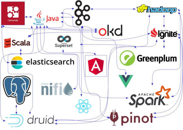 Подробное рассмотрение проблем использования тех или иных технологий является исключительно обширным и глубоким вопросом. В качестве примера на Рисунке 5 приведен список технологий, которые могут использоваться в рамках комплексного проекта по автоматизации. Список не является полным или исчерпывающим и приводится исключительно в качестве наглядного примера сложности вопроса. Современные решения, позволяющие автоматизировать целые отрасли экономики, не ограничиваются одной из технологий они требуют достаточно широкого технологического спектра, при этом правила и границы применимости соответствующих частных технологических компонентов могут отличаться от случая к случаю. Отметим также, что технологический набор, представленный на Рисунке 5, не является рекламой конкретных продуктов, а лишь иллюстрирует сложности состава современных решений, актуальных для цифрового мира.