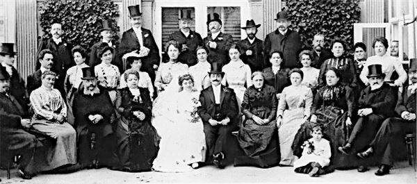 8. Свадебная фотография Лили и Эдуарда Блох. Эрмина и Зигмунд сидят слева от жениха и невесты